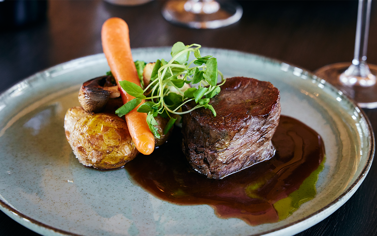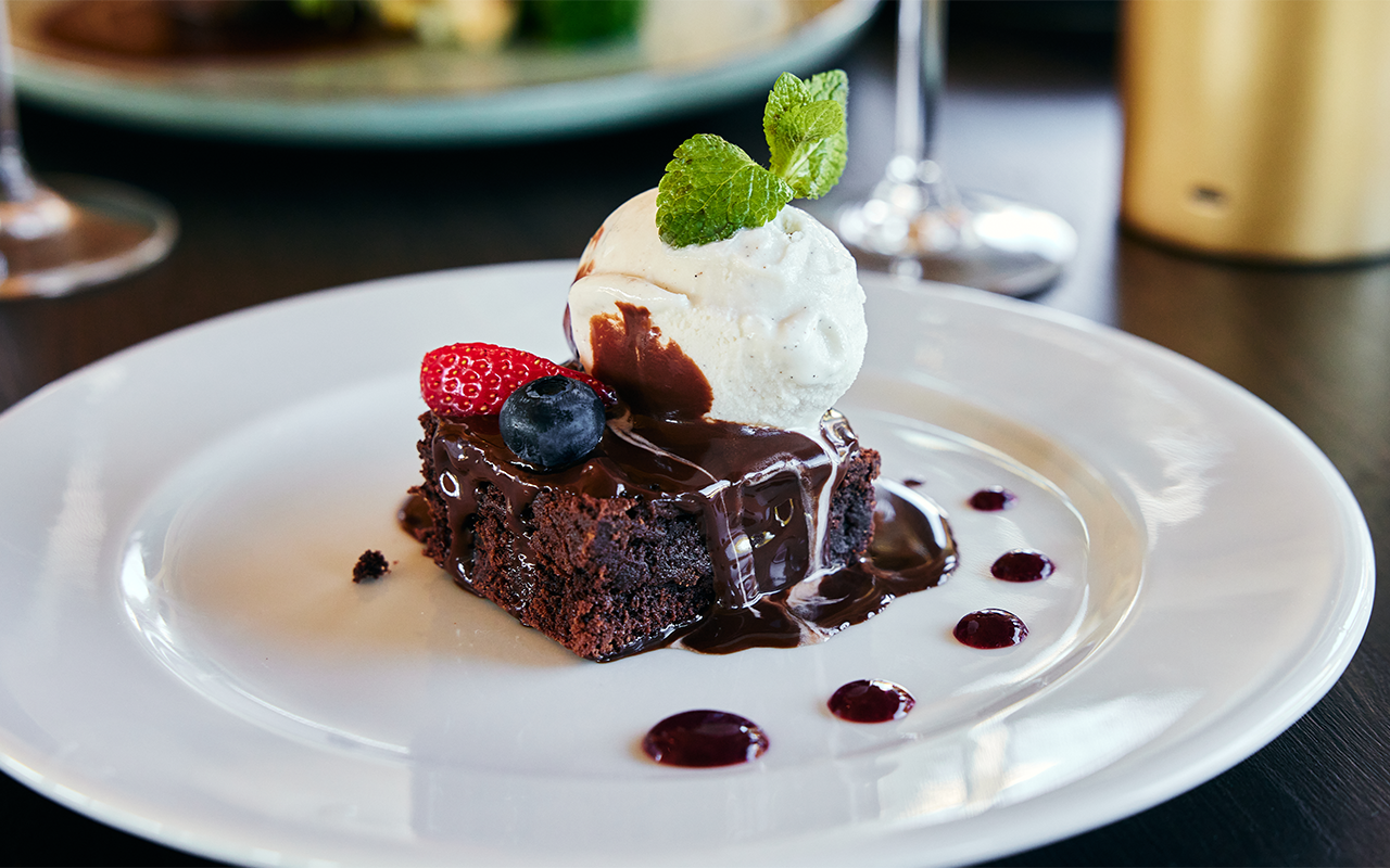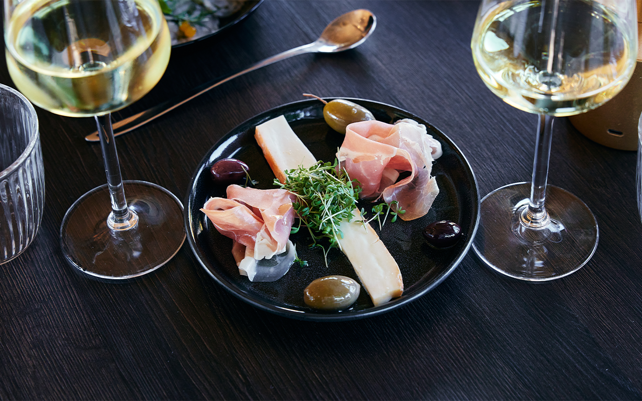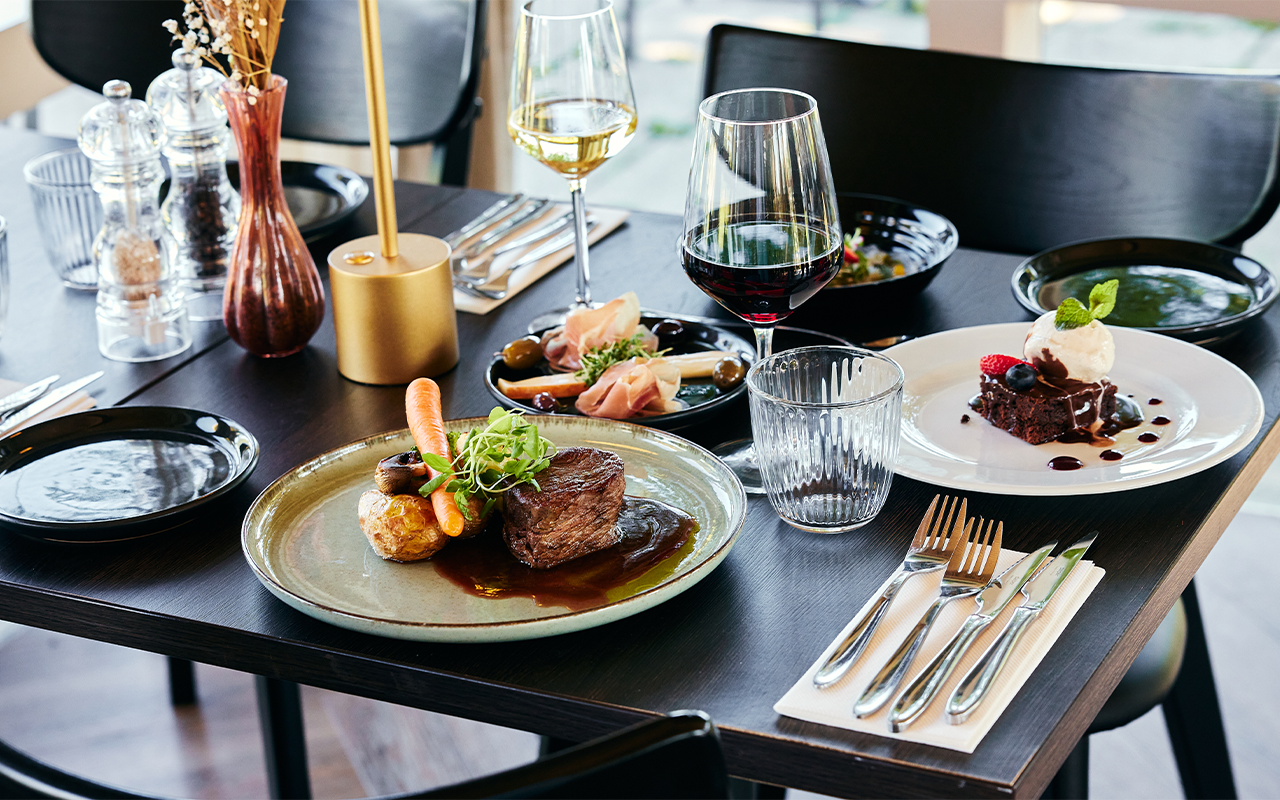 Denne gang står menuen på 4 gourmetretter, der er nøje sammensat til jer af køkkenet. I starter med at dele en platte af let og lufttørret Serano skinke, og derefter får I serveret hver jeres forret bestående af carpaccio lavet af torsk. Hovedretten byder på en lækker oksemørbrad med kartofler og rødvinssauce, og måltidet slutter af med et stykke himmelsk chokolade brownie med rig vaniljeis og friske skovbær.