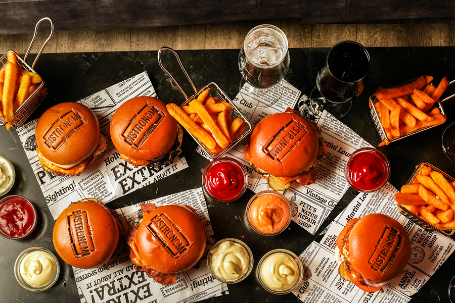 Hos Bistronomi Kitchen & Lounge i Amager Centret serveres smashburgere med sprøde, karamelliserede kanter, smeltet cheddar og masser af saft og kraft pakket ind i blød brioche og ledsaget af grove fritter med dip. Hvad mere kunne man ønske sig?