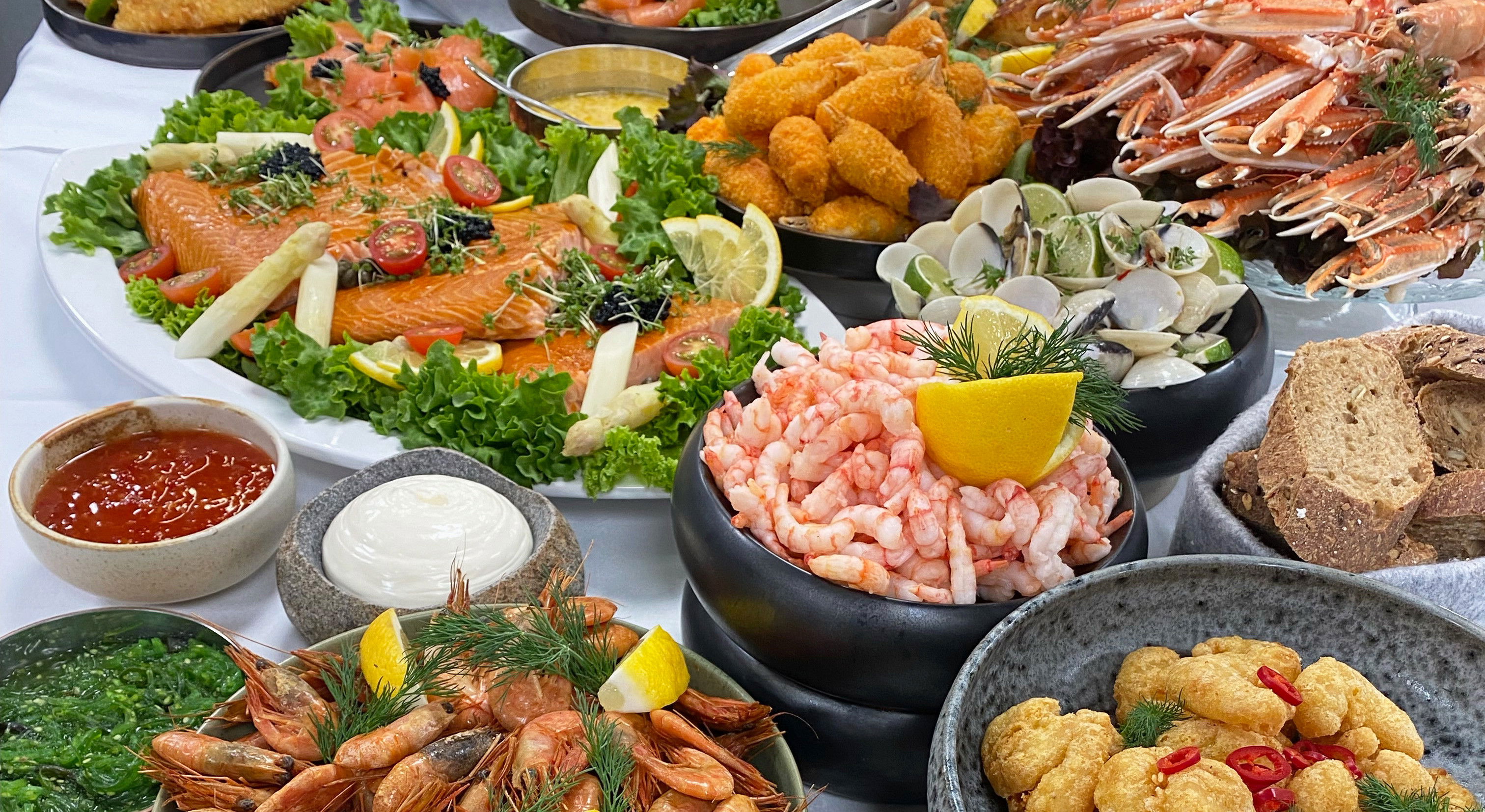 Til aften venter jer en kulinarisk oplevelse ud over det sædvanlige, hvor køkkenet byder på kroens kendte og overdådige fiske- og skaldyrsbuffet. Glæd jer til at smage havets bedste delikatesser, f.eks. sprødstegte fiskefrikadeller, krebs, røget laks, varmrøget laks, skaldyrsuppe, muslingesuppe, tigerejer, pankopaneret rødspættefilet og mange, mange andre fristelser. Til at fuldende jeres middag serveres der vin, der perfekt akkompagnerer de udsøgte retter.