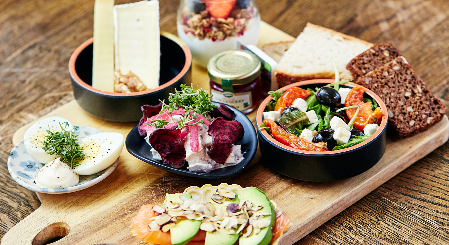 I kan glæde jer til et væld af økologiske lækkerier og forkæles bl.a. med dejligt surdejsbrød, brieost, røget laks med avocado, skyr med ristet granola og meget mere. For bare 29 kroner kan I tilkøbe en lækker dessert at slutte af på. Dette købes og betales direkte i restauranten.
