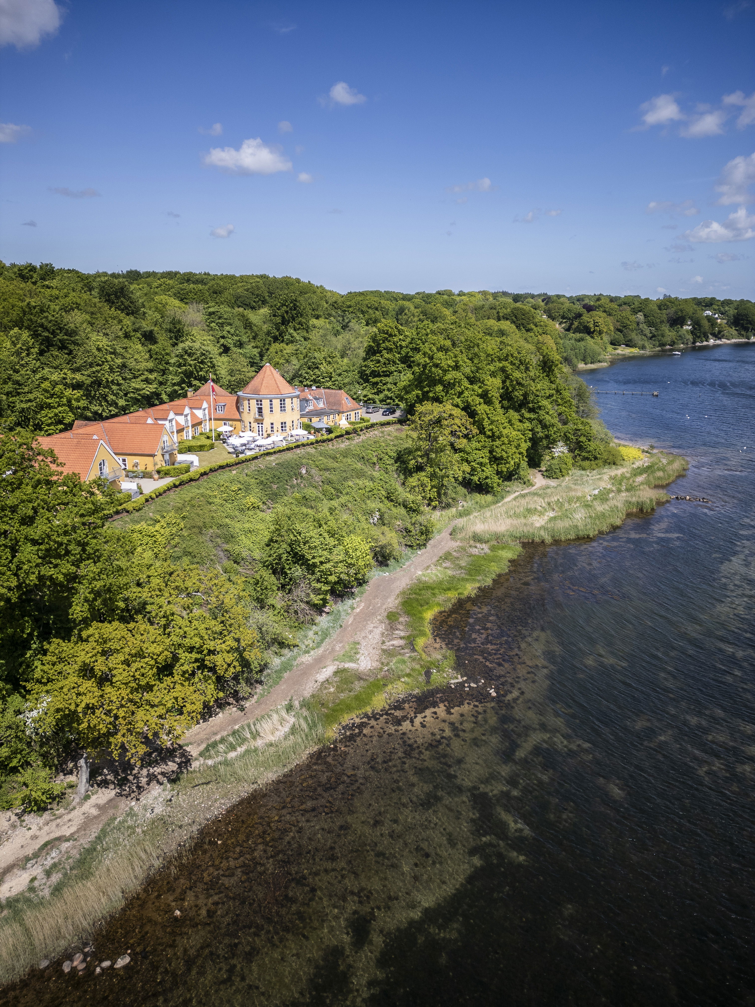 Når I bevæger jer rundt på hotellet, bliver I draget af den smukke udsigt over Flensborg Fjord. Nyd udsigten fra Tårnrestauranten eller Fakkelgaardens terrasse.