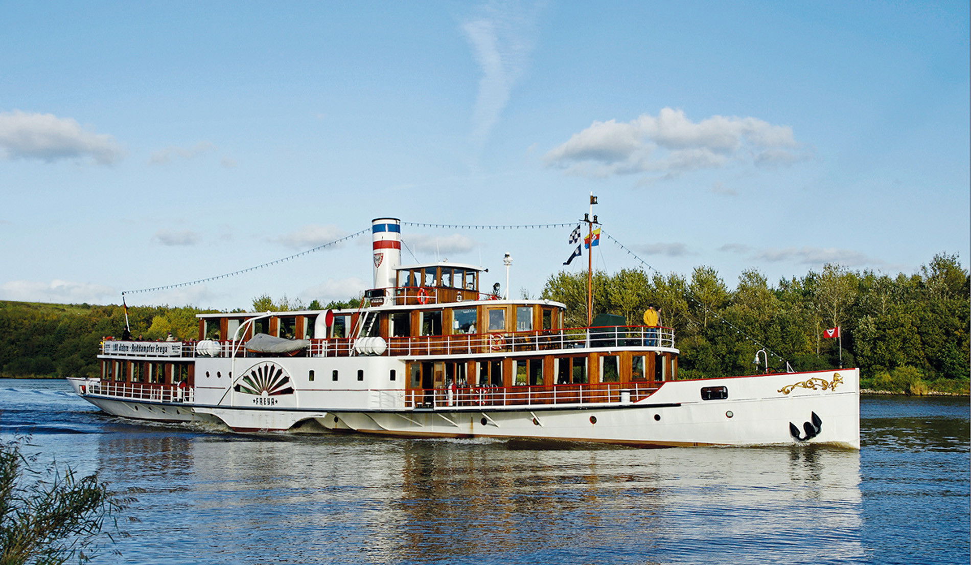 I skal på en spændende sejltur på en af verdens mest trafikerede kunstige vandveje, Kielerkanalen, og I starter med at køre til Kiel eller Rendsborg, hvorfra I sejler. Ved ankomst går I ombord på hjuldamperen Freya, det unikke dampskib, der stod færdig i 1905.