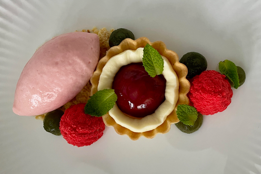 Munden løber i vand bare ved tanken om menuen, der bl.a. består af stegt kammusling, mør kæbe af gris, poussin og de himmelske søde sager, Creme brulée med hyldeblomst og rabarber med hvid chokolade.