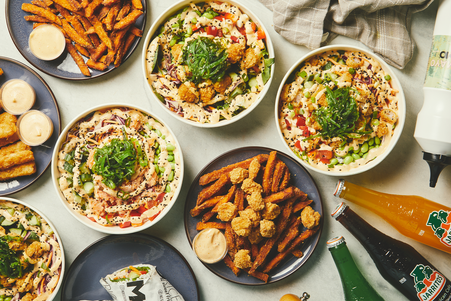 Få en delikat poke bowl med valgfri topping, sprøde sweet fries og dip hos MO'RICE. Gælder alle 7 restauranter.