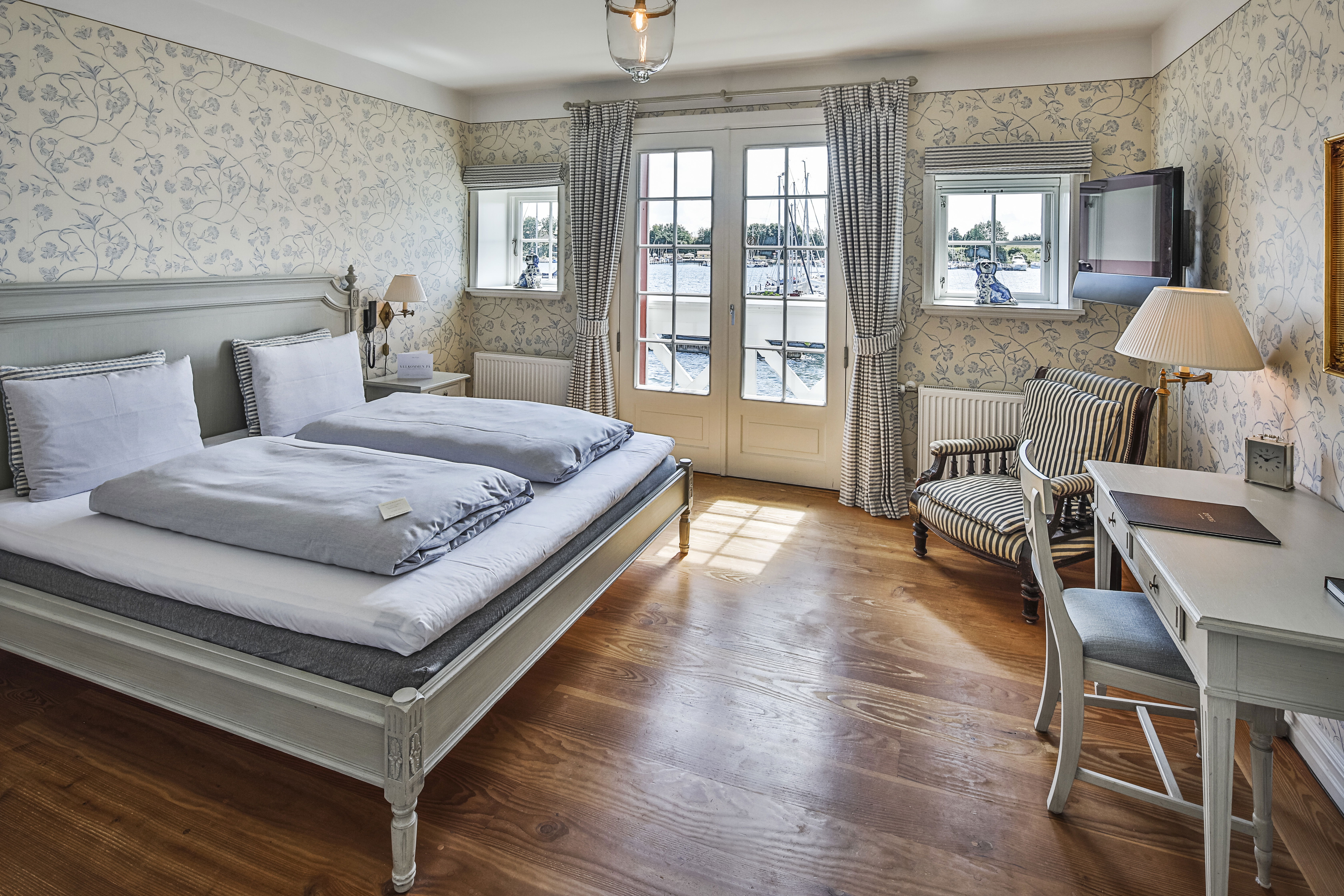 I bliver indlogeret på et superior værelse på hotellets 1. sal, der vender ud mod skoven. Alle hotellets værelser er individuelt og eksklusivt indrettet med blandt andet smukke blomstrede tapeter, senge fra Jensen DK og dyner fra Ringsted Dun beklædt med sengelinned i Egyptisk bomuld. På badeværelset er der opvarmede frotté badehåndklæder, og så kan I slappe af i luksuriøse Georg Jensen-morgenkåber og tøfler.