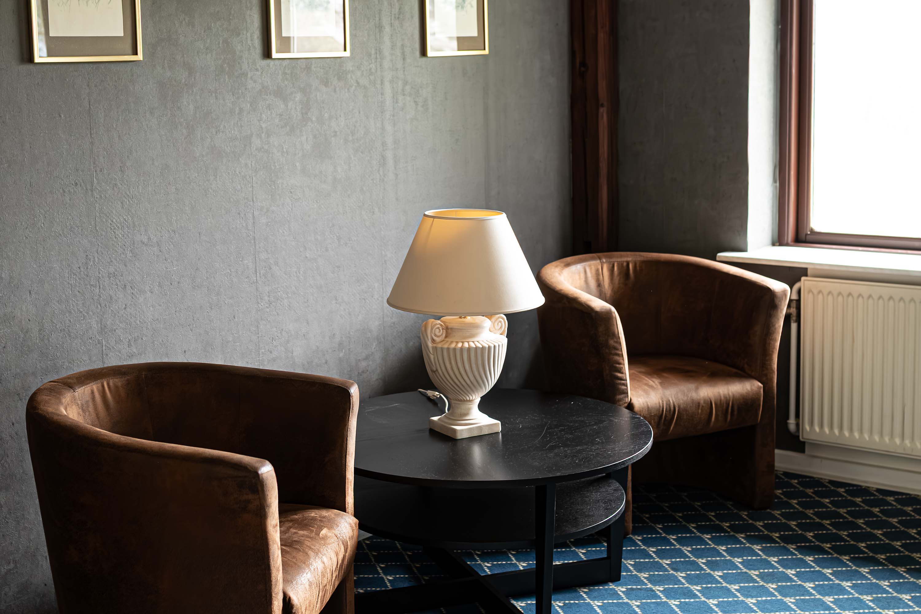 Rundt om Frøslev Kro er der højt til loftet, hvilket I ved selvsyn kan se fra jeres værelse, hvorfra der er udsigt til marker og træer. Indenfor har I naturligvis de faciliteter på værelset, der skal til, for at I får et godt ophold.