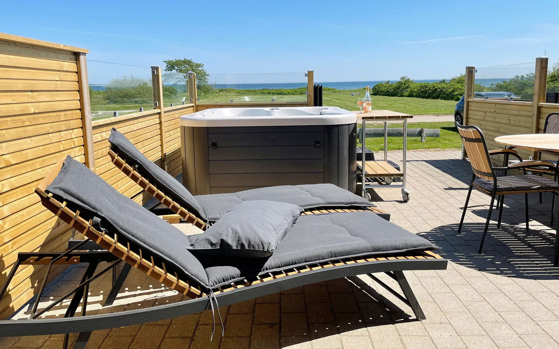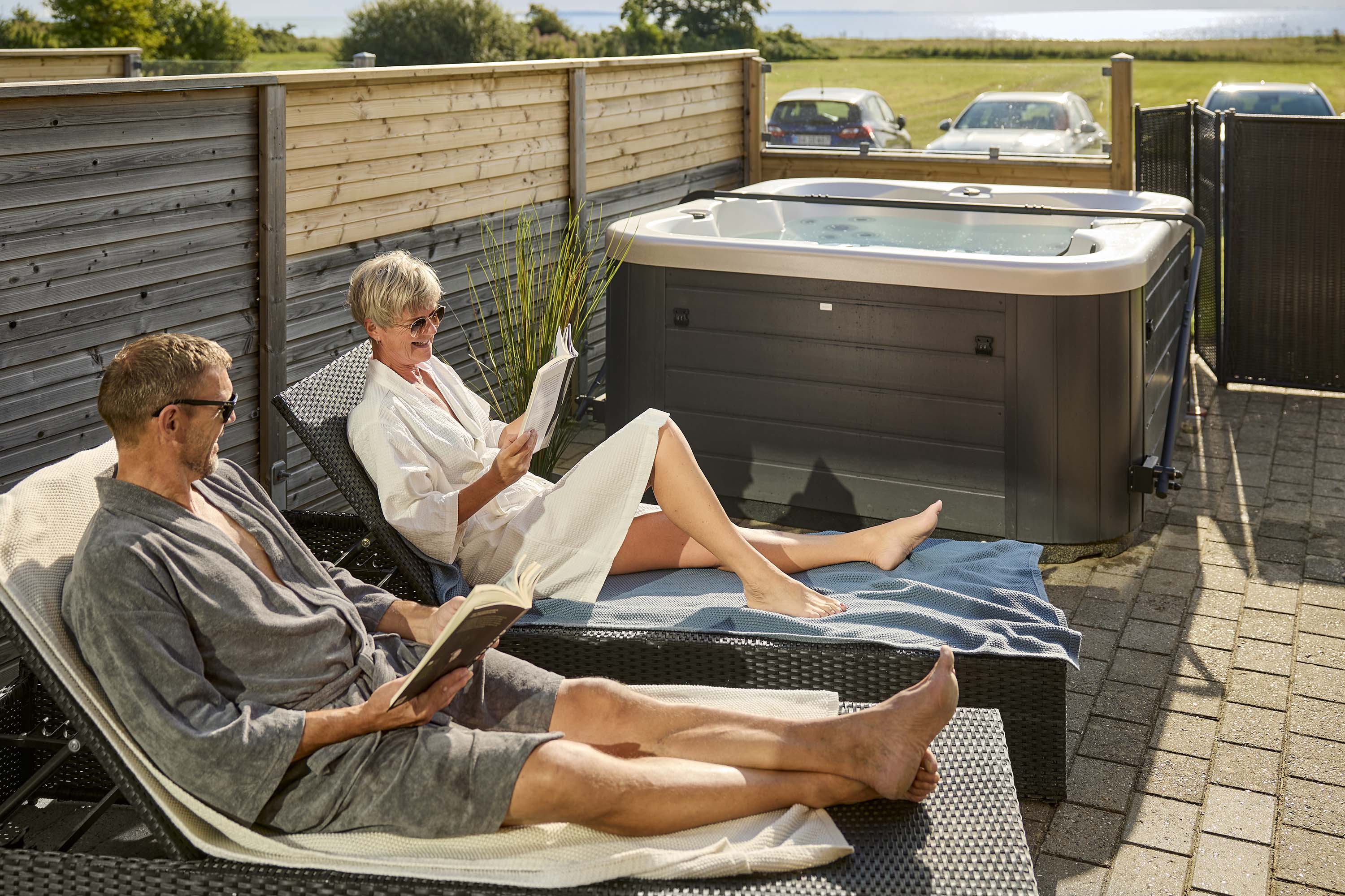 I befinder jer ved naturskønne Kattegat med fuld opvartning i form af bobler, aftensmad (hvor du kan vælge mellem tre retter) med vin eller øl - og opvarmet udendørsspa med havudsigt. Fra den skønne terrasse har I en smuk panoramaudsigt over Kattegat til Samsø og Tunø, som I sent vil glemme.