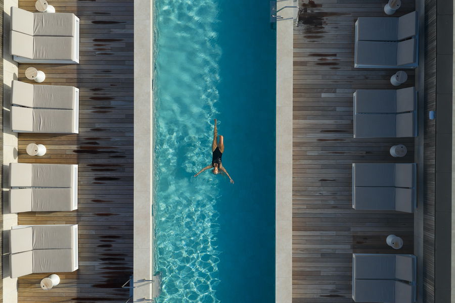 På toppen af Hôtel de Ville, og under åben himmel, finder I den intime Rooftop med 32 grader varmt bassin og tilhørende udvendig mahognisauna. Her kan I nyde solen og dase i de lækre loungemøbler, mens I nyder en drink fra baren.