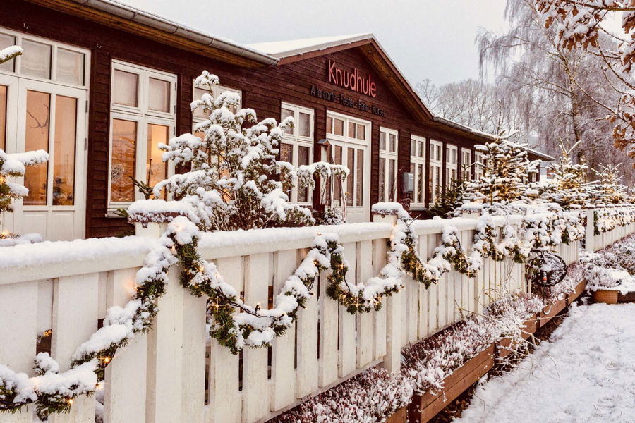 Ankommer I på ophold omkring juletid, kan I glæde jer til synet af skoven, haven og søen i de smukkeste vinterklæder. Der opstår nemlig en helt særlig julestemning på Knudhule Badehotel, der giver anledning til hyggeligt samvær med jeres kære. Årets juleudsmykning bliver lavet af Anne Sofie, der forvandler hele Knudhule Badehotel til et ægte juleunivers med finurlige juleinstallationer, der fortolker jul på en ny måde, men med rødder i traditionel jul. Hotellets udendørs udsmykning suppleres af en fantastisk lyssætning på et væld af juletræer og buske. De smukke juleinstallationer kan opleves fra den 12. november 2025 og helt frem til den helt frem til den 21. december 2025.