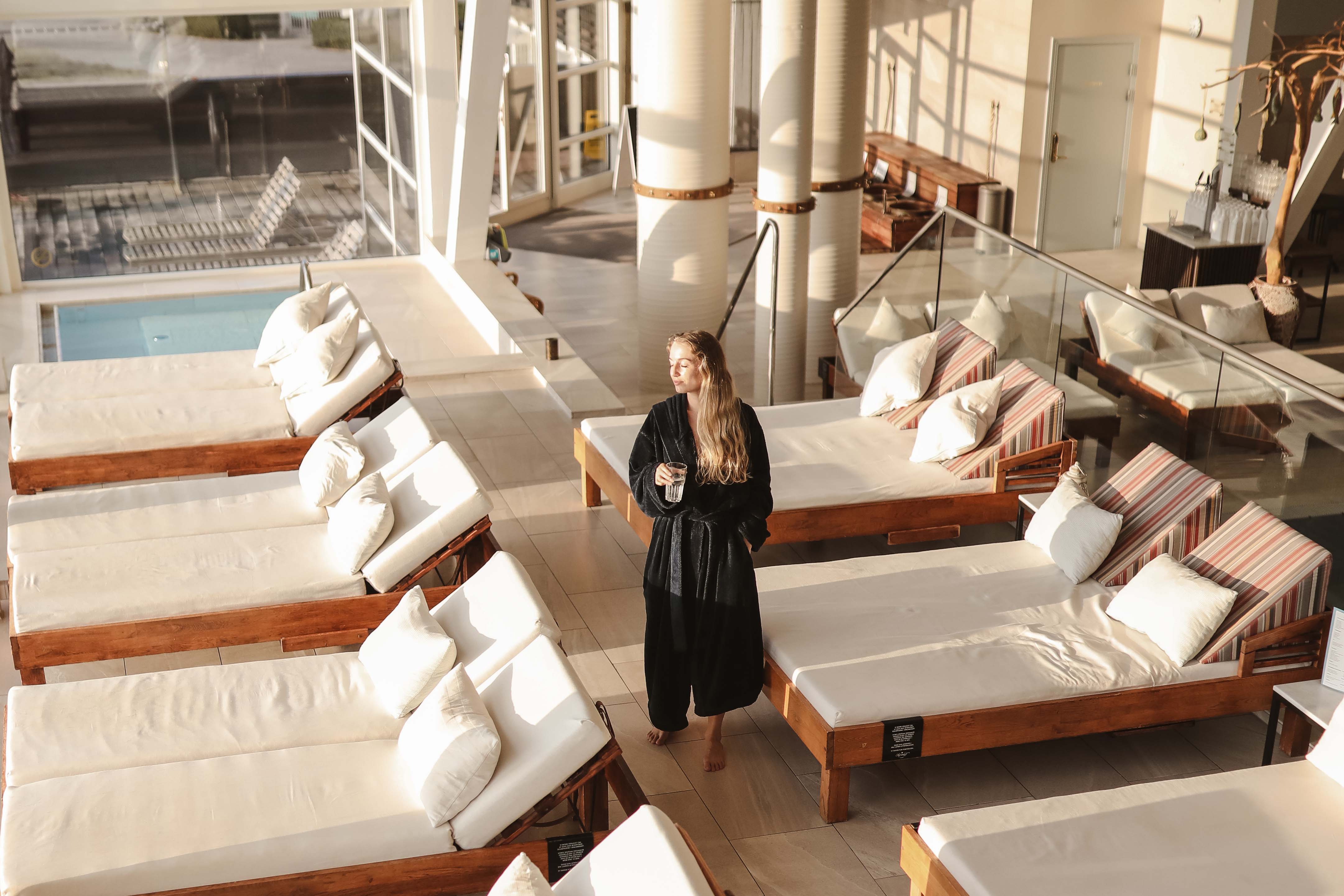 Bagefter nød vi nogle afslappende timer i spaen, hvor der blev tilbudt et bredt udvalg af drinks.