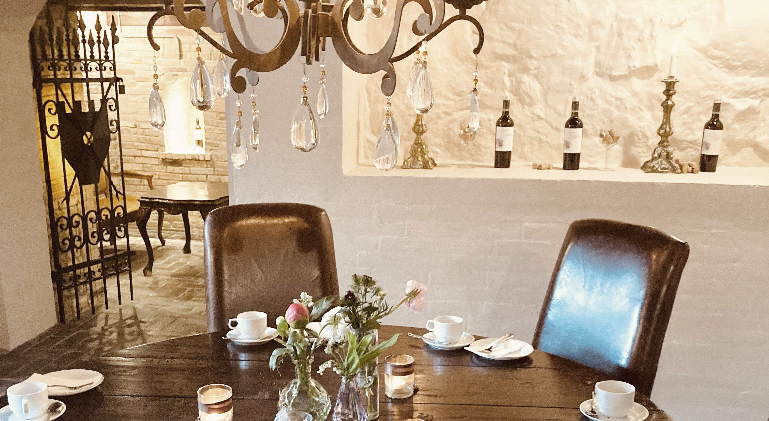Efter middagen kan I slappe af med en kaffe og cognac foran den knitrende pejs i de afslappende chesterfield-møbler eller i godsets vinkælder med tilhørende pejsestue.