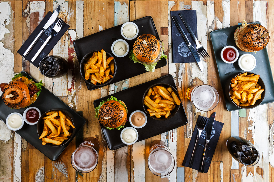 Få frit valg på de lækre burgere med fritter, dip og sodavand/øl hos populære Stempel CPH på Enghave Plads.